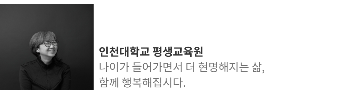 인천대학교 평생교육원은 인천 시민의 애정에 잘 보답해야겠다고 생각합니다. 물론 지향에 불과할 뿐, 발걸음은 더딥니다. 모든 영역을 한꺼번에 다 잘하기도 힘듭니다. 하지만 하나씩 지치지 않고 계속할 것이라 약속합니다.